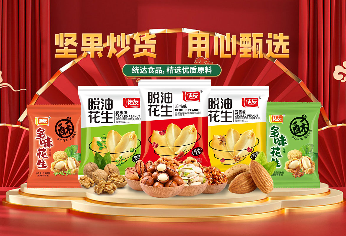 洛陽市統達食品有限公司創建于2013年,坐落于風景秀麗的嵩山腳下,東依省會鄭州、隴海、焦枝兩大鐵路在此交匯,西連高速,洛界高速,縱橫東西南北,207國道,交通便利。當地環境優美。經濟繁榮昌盛,實為興業辦企,鴻運福順的好地方。少林寺,白馬寺,龍門石窟,玄奘故里等名勝古跡星羅棋布,近在咫尺,盡展千年華夏文明?! ∥覐S是一家集生產,研制,銷售為一體的食品加工企業,總投資1500萬元,廠房占地面積5000平方米,員工100余人,其中技術人員20余人,年加工能力達1500余噸。公司以堅果炒貨為主導,自主三大品牌:統達牌、紅仁館牌、佬友牌和授權品牌速達,主要產品有酒鬼花生系列,麻辣花生系列,香辣酥系列,果仁裹粉類系列,怪味胡豆系列,蠶豆、青豆系列等多個品類。產品暢銷全國各地,深受用戶好評。產品選自上等原料經多次精選而制,秉承濃郁的特色風味,保留其原材料的營養和原汁原味,富含不飽和脂肪酸和人體必需的氨基酸和鋅元素,不含膽固醇,黃曲霉素,不添加防腐劑、著色劑;具有濃郁獨特的香味,是真正的“從土地到餐桌”的健康食品。產品特點:色澤金黃,顆粒飽滿,然后經多種工藝加精良的天然配料精制而成,鎖生產出來的產品既保持著產品的獨到的口味,又不失產品天然的營養成分,滋味純正,辣椒鮮紅食之麻,辣,香,酥,甜,口感獨特,食后滿口生香,欲罷不能。久食不厭,老少皆宜,居家旅游,佐食配茶,宴賓饋友之佳品,深受廣大顧客歡迎和贊揚?! ∥覀儗⒁跃康墓に嚕茖W的管理,嚴格的質量控制,優異的品質保障,以誠信,創新,勤奮,求實的企業精神,立于強者之林,迎接新的挑戰。以飽滿的熱情迎接與你的合作。  本公司“以質量求生存,以誠信求發展”歡迎有志之士加入我們的團隊,攜手共創美好明天!